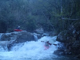 Gorge Rapid (IV+). This is a junky rapid that needed more water, we ran down the far left. The rapid ended in a hole with a shelf on the right that would drop you into the left wall.