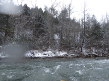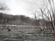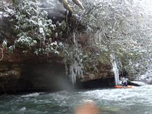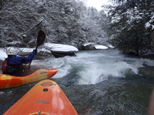 This is a nice, relatively mellow run very near Daddy's Creek on the Plateau. It requires a fair amount of water to get it going. The run is perfect for the class III boater who is looking for a nice long float that will take a good portion of the day. At 13.7 miles it is one of the longer single runs in the Plateau. For Jim and I, it took us a little over 2.5 hours of paddling downstream the whole time... but of course, going slow was not in the cards for us that day as the temperature never got over 28 degrees while we were on the water. Paddle strokes keep you warm!