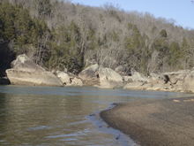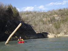 - Bark Camp Creek. This is where we took out. See the directions below for how to hike out. There is also one last small rapid here when the lake is below 690 ft. Also, if the water is up again... you can hike up and run some nice ledges and slides on this creek.