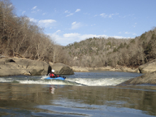 - Eagle Creek: Across from put-in is Eagle Creek. If the water is up high there is a cool 10-12 foot ramping drop into the Cumberland with the scenic 40ish footer behind it. At low flow the ramping drop is ugly.