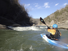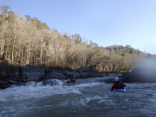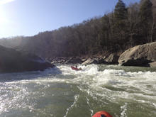 The river would be an absolutely classic class III run if it weren't for one thing. A lake paddle. And it isn't a short lake paddle either. We had a lake level of 706 ft which meant that all the major rapids were in, with the lake starting in the runout of Last Drop. We also did the hike out at Bark Camp Creek. Even with these items, the lake paddle was still a little over 2 miles. If the lake is 690 then the moving water goes all the way to Bark Camp. From the hike out location, it is actually another 2.5 miles on the lake to the boat ramp access. So your choice. 2.5 miles more of flat water, or a ~0.5 mile hike to your car? The hike seems the obvious option to me!