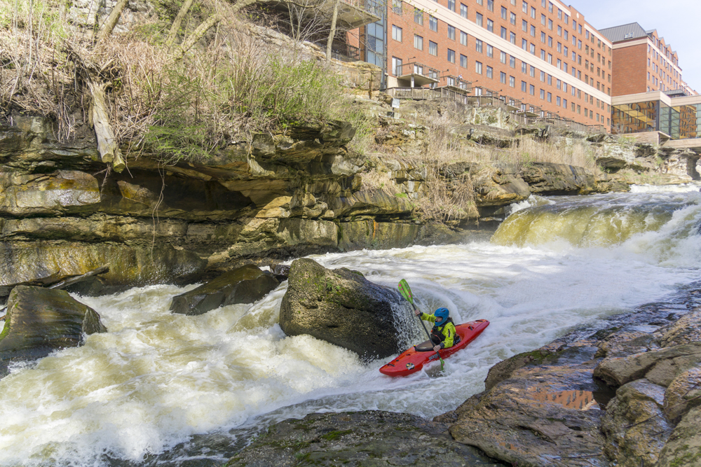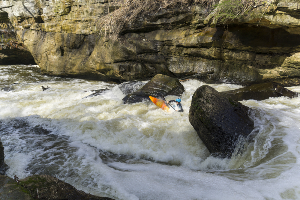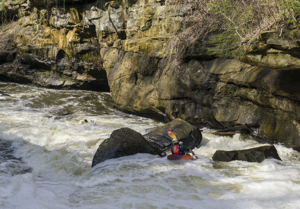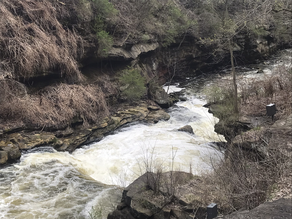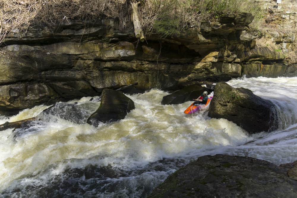 Other options for shuttle are to hike out just below the last rapid. A small ravine/creek thingy breaks the cliff line. You can scramble up that and it deposits you at a parking area next to HiHo Brewing. This is then easily walkable (0.6 miles) back up to the put-in (Old Portage Trail Rd). The other option is to paddle 0.8 miles of flat water to the Gorge Metro Park. This is then a 1.3 mile walk back to put-in.