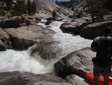 Smaller Slides (IV to IV+). A few small slides, ledges, and seams await just below the pool. We had looked at these rapids while hiking in so we made quick progress. There were three ledges that you will want to take a look at as if the water is too high they may become juicy.