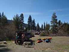Take-out: From Shaver Lake, take Dinkey Creek Rd East off of Highway 168. Follow for 11.5 miles. Turn right on McKinley Grove Rd and cross the Creek. Turn left on the first road and continue for 0.3 miles to the dead end and old bridge over the creek.