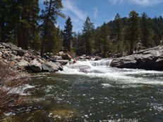 Dinkey Creek is certainly best known for the section of river below Ross Crossing, known as The Waterfalls. A testament to how good that section is as some 20 miles upriver is the Infinislide. As long as I can remember I have wanted to run Infinislide. Almost a mile long, dropping a few hundred feet in a long continuous slide, with a few ledges to spice it up and ending in a 20 foot falls... it sounds (and looks) like heaven. So finally, this year (2012) we motivated to head out and drive the 4.5 hours to Shaver Lake and the nearby Dinkey Creek.