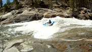 Rocketman (V). The first rapid below Infinislide slams you into the left wall. It looked very hard to avoid, so we quickly walked around it to put-in below. I believe this is the rapid referred to in the comment at the bottom of the page.