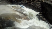 Cow Creek (IV+ to V). This was one of the best rapids of the run. Scout from the right. The first main ledge is maybe 8 feet tall and back by a rock. We went left over the ledge. Below is 50 yards of hole bashing goodness. A really fun rapid.