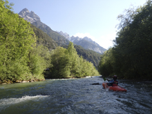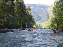 After the Isel Gorge, a coffee & gelato break, Ali (Reiner's wife), Reiner, Jim and I decided to go run this section of river. Reiner has participated in an extreme triathlon on this section that included paragliding, mountain biking and kayaking. The section had a nice slalom course to go along with the surprisingly nice scenery. You are in the city basically, but the mountains that surround you are spectacular and will keep you entertained.
