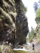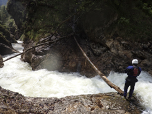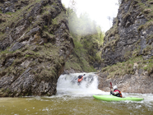 The plan was we would fly to Munich, Reiner would pick us up and we would "try" to get a river that day. As it turns out, we got three rivers that first day and got skunked due to high flow on another steep creek. Good thing I brought some 5-hour Energy with me just for this day! The Gimbach was our first stop and was ~2.5 hours from the airport. The time in the car flew by as we caught up with Reiner. Arriving at the river, we had a few minutes while we waited on Harry, Robert, and Jurgen to show up. Jim and I took the opportunity to hike a little ways up the creek. It surprised me just how small it was. Apparently we had "healthy" water, but that must have only been 150 cfs at the most. I can't believe that people run this a foot lower! I thought the flow we had was idea for forgiveness, though more water would have lubricated some of the drops better. But I could see a few rapids (like the mandatory) being more stout with more water. As it was, I thought it was a great first run for us. It was Jim's first time in a Flying Squirrel, I was sleep deprived etc. I would say it is fair to call it IV+. Maybe at lower flows it is more class IV. I understand it is a lot of peoples first waterfall run, and I imagine that is at lower flows. The only downside to this run I would say, is that you have to schlep your kayak from the bottom to the top. The start of the hike is really steep but then it meets a road and calms down for the rest of the way. There are a few drops that are worth scouting on your way up so keep an eye for those on the hike.