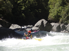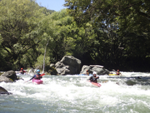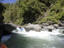 Slot #1 (III+ to IV). The first blind rapid is just before the left bend in the river at the end of one of the two or three long rapid mentioned above. There is a slot down the center/right that you want to run down the center. Eddy out right below as the most consequential drop of the run is below.