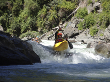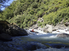 - Gorge Picks-up (III+ to IV+). A few nice long rapids pack more gradient then the previous drops. At the lowish flow we had, no holes were retentive, rather rock impacts was the hazard. At higher flow I imagine the continuous nature of the section from here to take-out makes it much more challenging.