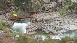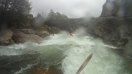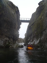 - Bridge Gorge (IV-). When you see the gorge with the foot bridge over it, head far far right for a mellow slide. It is really only class III... but if you mess it up the hole on the left was a bad one. Just downstream the Calasima comes in on river left and you have one last rapid.