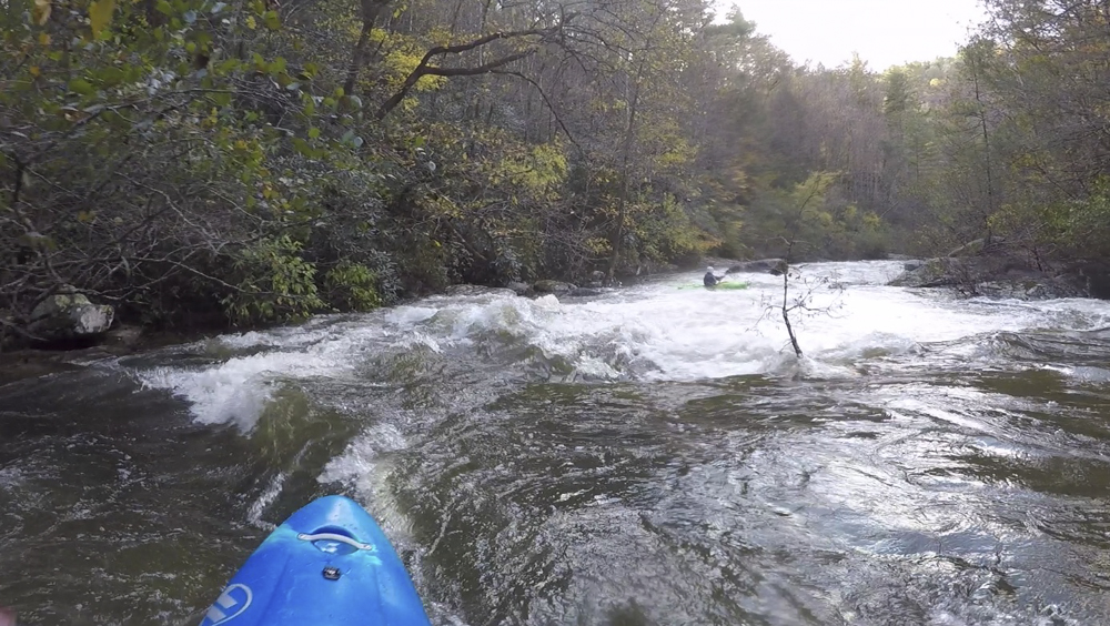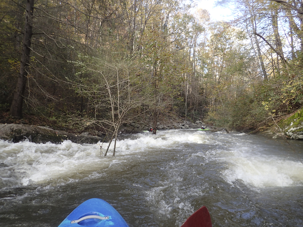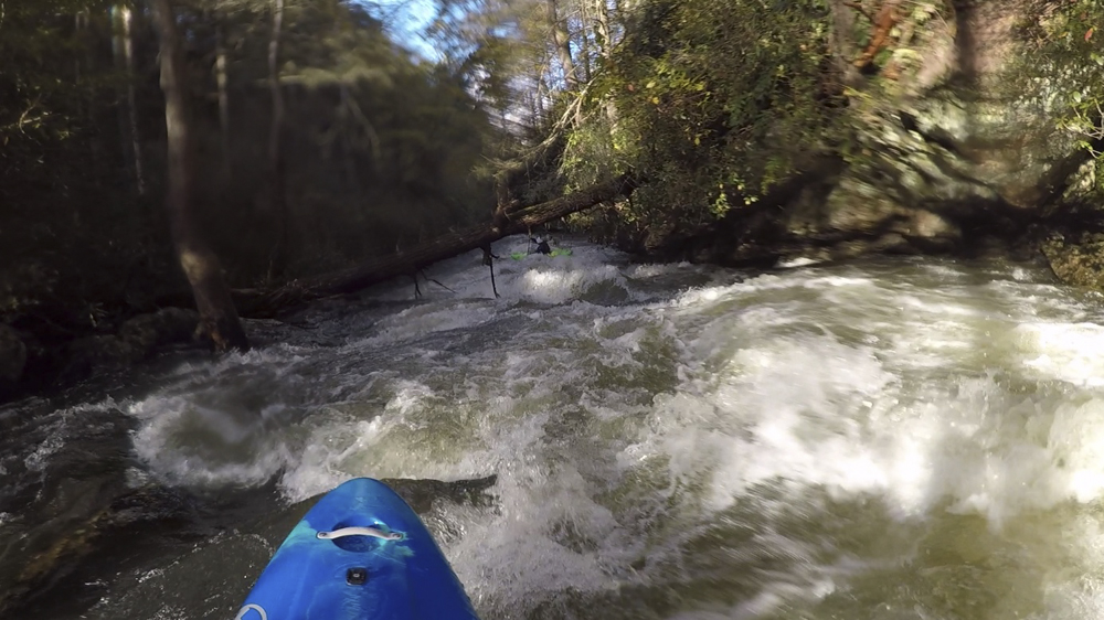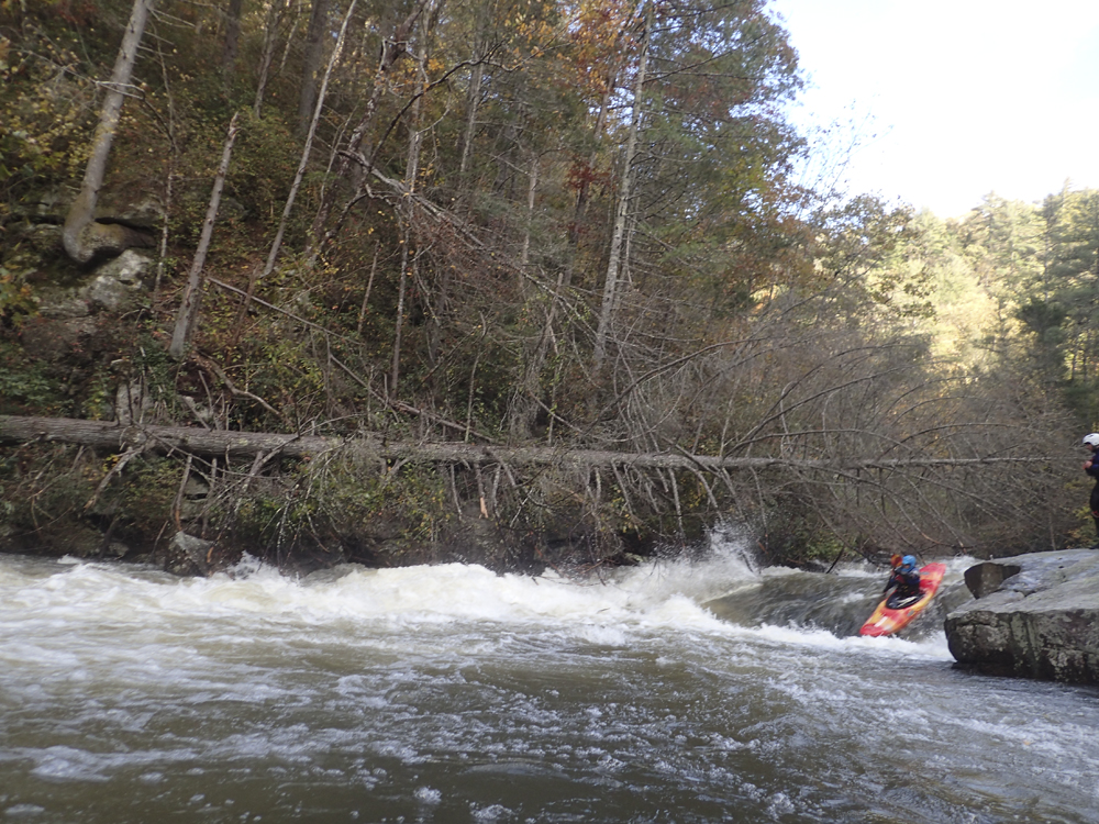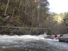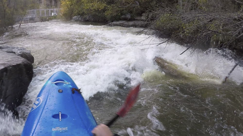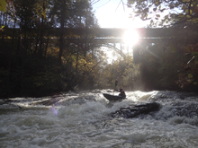 Once on the river, you immediately get to brush choked small rapids. Follow the main flow and keep your eye on the next eddy at all times as wood is always present. Quickly, you get to the first good rapids, the slides that are just upstream of the bridge and below it. These are good read and run, and can have a few sneaky holes if the flow is high. I found at our flow, 100.8 or so, that they were a mix of feeling low and still stern squirting one member of our group. Below, you enter another brush choke. Ideally you would go far right, for us there was a tree blocking it so we went in the right channel, which is actually the bigger one. This ends in a pile-o-crap rapid that although doable, was not pretty. The left channel was clean. Below, it quickly goes into a slide with a large hole in it, stay far left. Below is another small slide with smaller hole. Then, a junky rapid that you want to hang on a boof far right on. Careful as immediately downstream is an ugly undercut. Below this things mellow out until the slides, ledge, and small falls directly above take-out.