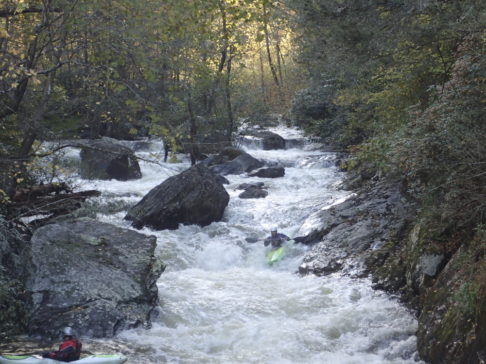 The run is short, but felt longer than 1.35 miles for us sorting it out ourselves. The rapids themselves are probably only class IV, I have read at lower flows they are class III. But the brush gives the rating an extra half step in my mind. You wouldn't want to be an aspiring class IV boater going in here without folks who know the run. But if you are up to it, and it is running, it is certainly worth doing. By no means classic, but worth doing.