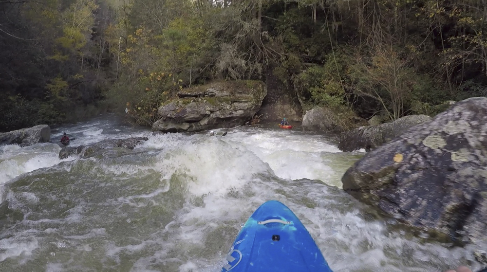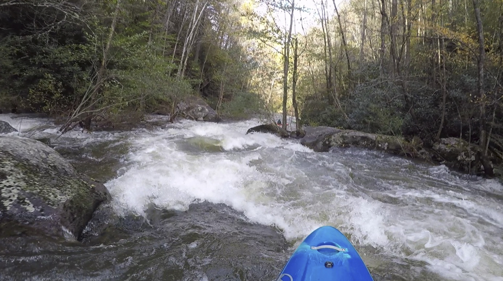 Blind (III+). I hoped out to scout the next one as it rounded a blind corner behind a big rock. It was actually totally ok, just a ramp to start left on and then turn back center for a low angle hole that as long as you hit straight, you will go right through.