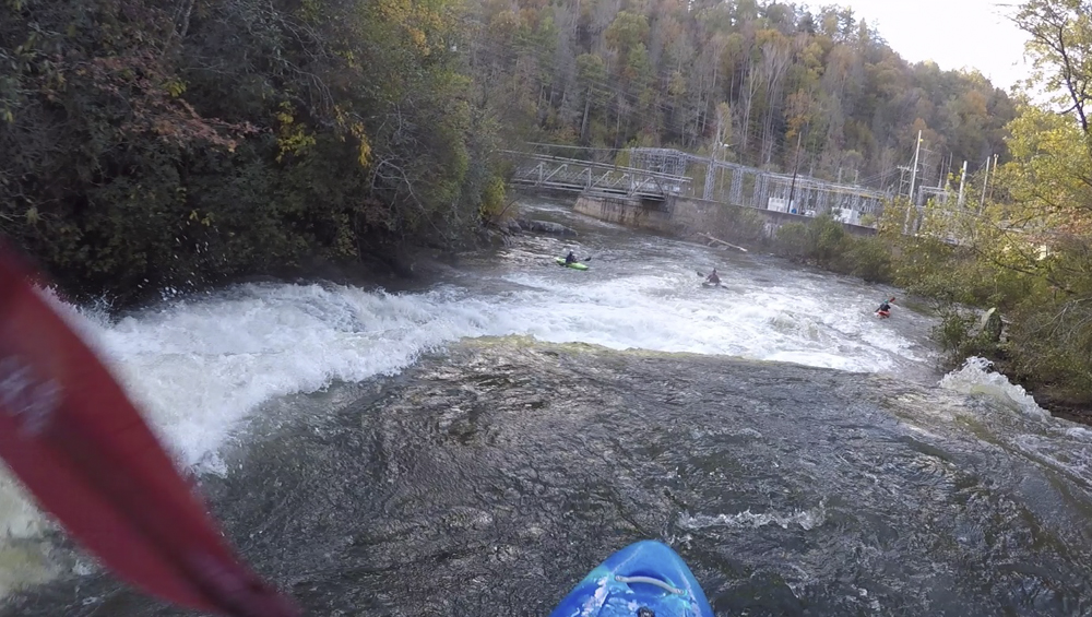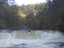 - Powerhouse Falls (IV+). Scout from either side, right may be easier. The line is down the middle, directly off the middle or even left of middle of the flake ledge. Boof it as it is not deep. At lower flows I believe people portage it.