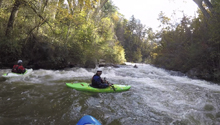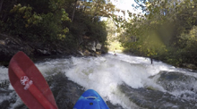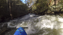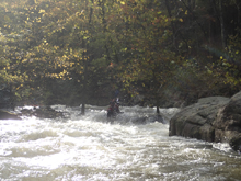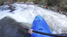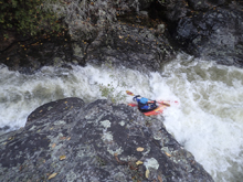- Hold the Boof (IV to IV+). Immediately downstream is the junkiest rapid on the run. We booded the entrance far left and then immediately eddied out on the right. Jim gave it a quick scout. The line was to boof the far right, and to bring your boat left to right and hang on the stroke. That way you land in deep water rather than a pile of rocks... which I did. Note, immediately downstream is a rock wall that is dangerously undercut.
