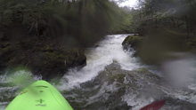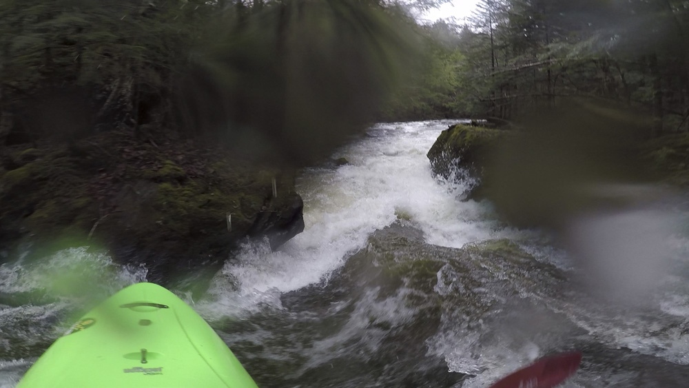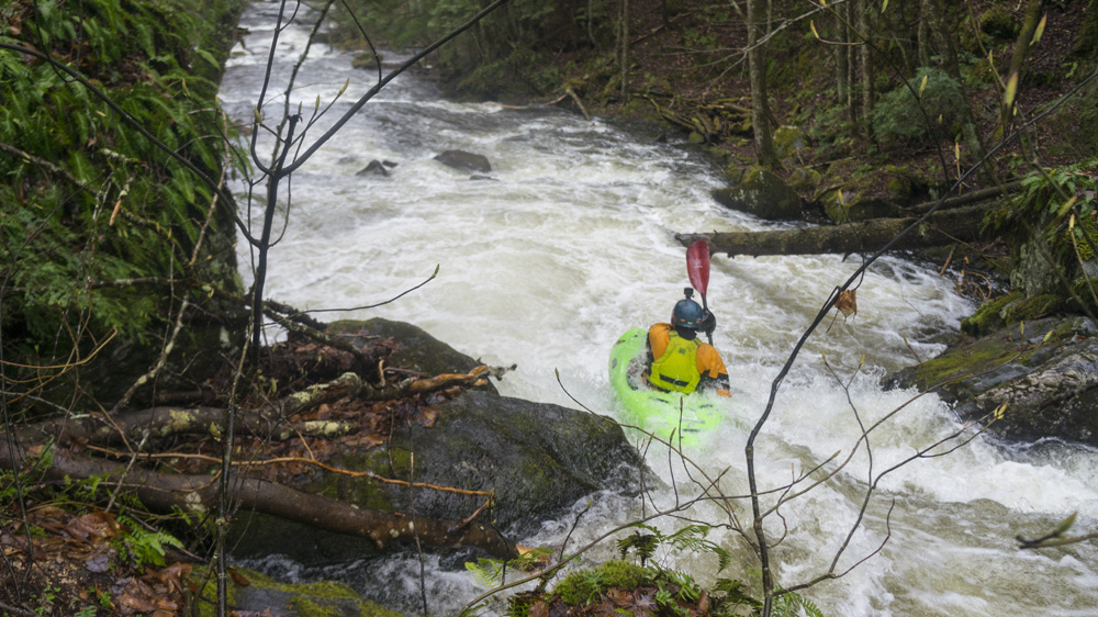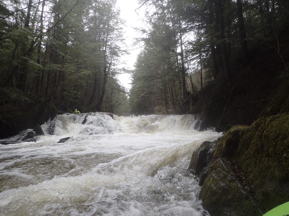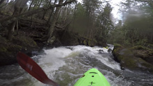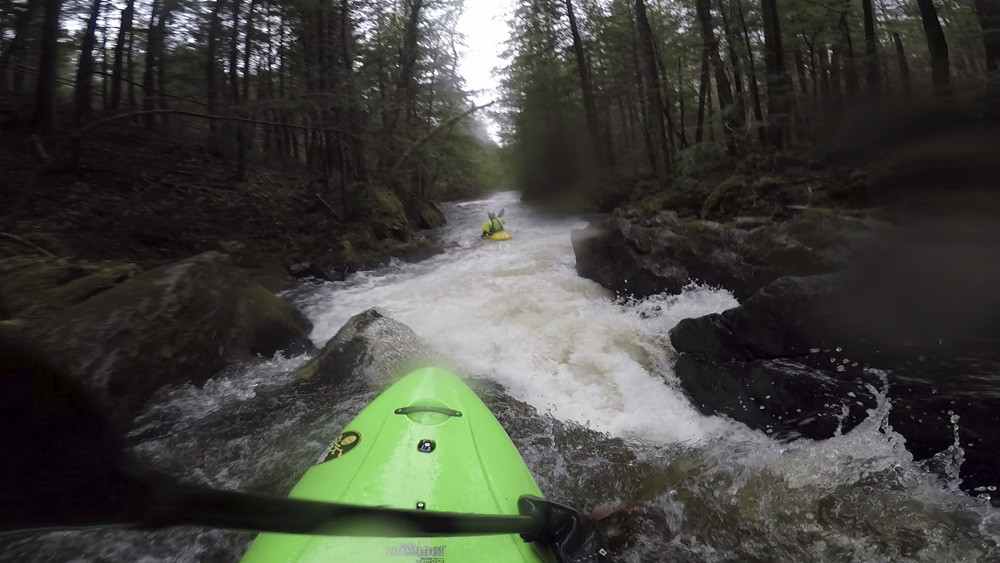 But the rapids were super fun, and the canyon super pretty, which makes the run very worthwhile even at the lower 1 tube flow. Immediately below put-in you get to the first scout as the flow splits around an island. Scout on the right or left, the right is nice because you can see the exit. The left would be nice because you can scout the lip. Below, the run mellows off for a while as you meander through the woods and through a meadow or two. But eventually the action pics up as you get to the second class V rapid, a double drop that was full of wood our day. Below, the action pics up with slides and ledges and a few chunky drops. Another class Vish drop is a big ramping ledge that is an easy boof, but a crucial boof as the hole is powerful. Downstream, more slides fill the river with one last blind corner having a ledge that you want to go down the left as the right has a massive piton (trust me, I found it). You then quickly find take-out.