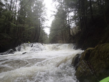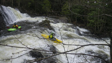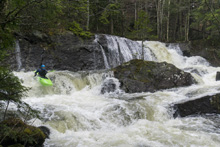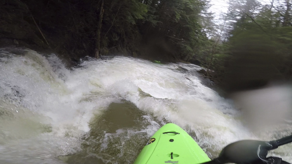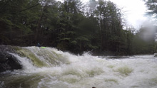 - Humble Pie AKA Money Shot (IV+ to V-). A pretty straight forward drop, a rapid leads to a pinch and a 10 to 12 foot falls are so. At the pinch the water ramps up giving you a great pad to boof off of making the rather big hole at the bottom a non-issue. Just don't go far far left as it lands on rocks over there but you would have to try to do that.