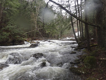 Put-in: Head back west on VT-15 for 2.3 miles. Turn right on Garfield Rd and follow for 3.1 miles to a T, turn right to stay on Garfield Rd. Quickly cross over the river via culvert and then look for a wide spot 100 yards below to park and walk the 100 yards down to the water.
