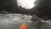 Exit (IV). The exit around the corner, although not as big, is long and full of holes and boofs. I bet more carnage happens here rather than in the crux rapid, as people let their guards down.