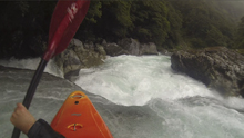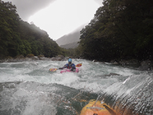 The Arthur had water for sure, maybe the Tutoko (it did). But Diane and I both decided that hiking was not in the cards for us that day so both of these runs were scrapped. However since it was another day of just us, we also needed a section we could hitch or jog the shuttle on. So we went back over the pass to the Hollyford to do the upstream, and easier, Falls Creek section of the Hollyford. I think Diane and I were both getting tired by this point in the trip as we had started to snip at each other a little. In hindsight maybe I should have waited longer to ask "why didn't you boof?" after she plugged a big hole, back-endered and was pushed against an undercut. It worked out ok as she got herself off of the undercut and stayed in her boat. But my question was not received well. Who would have thought?