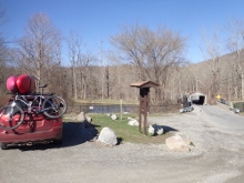 Waking up just a few miles from the Housatonic, we quickly woke up, packed up the car, and went to put-in to check out the flow. This was going to be a long day. Nine hours of driving to do and I hoped to talk Diane into stopping at Gettysburg for a few hours to sight see. With this in mind, we quickly made up our minds to ignore the cold morning and get started. To postpone the pain of the cold water, Diane decided she wanted to bike the shuttle to start the day rather than end it. So off she went, retuning with very cold hands!
