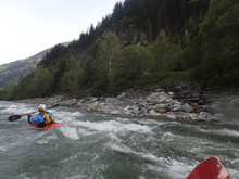 I don't have much to say on this one. This is a popular rafting run, and apparently rafters actually break it up a little further calling the section directly below the Cataracts the Demolition run (if I recall correctly). It is sorta a grey area for that part... not part of the Cataracts and not part of Huben. Most people look at Huben starting just upstream of where the Defereggenbach comes in on right right. It starts as class III and then gets easier as you go. There are a lot of places you can access the river to take out, some will choose to take out at the camping place that we used which would be convenient. We opted to take out where the Kalserbach comes in on river left which is just a little ways downstream from the Defereggenbach.