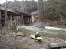 Put-in: From Canyon Mouth take-out, continue heading up river on Cherokee County 275, in 0.6 miles, turn right to stay on it. Follow this for 2.0 miles before turning right to stay on it again. You will then get to the bridge that crosses Johnnies Creek. Park on the near side of it.