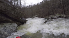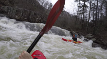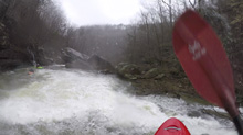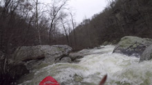 Below put-in, you get a nice waterfall to warm up on. Below you flirt with an undercut wall and caldron. The river then quickly enters boulder gardens where you will boofing through some large holes if the water is up. Next, you will find your self on a long low angle slide which then tilts to be a steep angle slide. It is big, but it is also super straight forward everywhere. Below, is the biggest and most dangerous rapid. Gorilla Constrictor is a stout drop, I would say more class V+ than V at our flows. It is multi tiered, with big holes, an undercut, and very in play sieves. Additionally, the outflow goes into more sieves. Jim styled it, Diane and I used the trail on the left to portage. Downstream, another slide with a sticky hole on the left ends the bedrock and takes you back to boulder gardens. The exit of the hard stuff is a narrow hallway that leads to a slopping left off angle ledge that you want to run middle and with a good noise lift. The eddy on the right tends to recirculate people back into the hole. Below, the river mellows out with one more congested rapid before you hit the Little River below. A quick few minutes later you get to take-out.