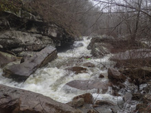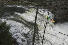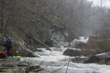 - Entrance Falls (III+ to IV). Immediately below put-in is this falls. Most will run just right of center and ride the slide down. At high flow some boof far left. It is a straight forward drop, but at higher flows it is hard to stay on the surface and the pool moves directly downstream into Two of Three.