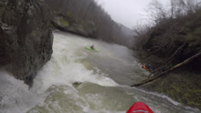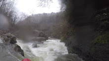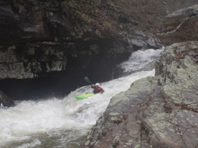 Left Bank (IV- to IV+). After the long rapid of Cave Left. You get to this rapid which is short but tricky. We boofed the curler off the left wall which then lands you in a cauldron which exits through a small hole. This then went immediately into Right Slot/Conveyor/Big Slide.