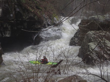 - Cave Left (III+ to IV+). At our flow the rapid had a good size hole that could back ender you immediately in front of the cave on the left. There was a clean line though left of center, next to the cave. Trying to stay right actually was worse. Immediately below was another ledge on the left that we ran on the right. We then ferried infront of an undercut on the right and began to work out way down the river.