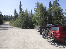 Put-in: Go back out to AB-40, turn right and continue south for 1.9 km. Turn right at your next right which also has signs for Widowmaker access. Follow this down to the parking area.