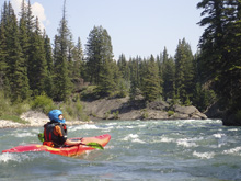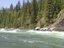 - Point Break (II+ to III-). A nice section to practice eddying out, catching eddies midstream, ferrying etc. A nice little natural slalom course with plenty of options for lines.