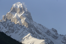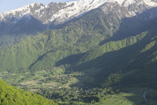 For us though, we left the Khobis and headed North into the Greater Caucasus mountains and got our first views of the tallest mountains in Europe. That's right, the tallest aren't in the Alps, it isn't Mont Blanc... it is Mount Elbrus in the Caucasus Mountains. As we drove, I couldn't stop taking pictures of all the wonderful scenes we passed. Finally, after about 5 hours we arrived in the town of Mestia, deep in the mountains. We got a wonderful dinner, and then set up camp along the Mulkhura with wonderful mountain scenery surrounding us.