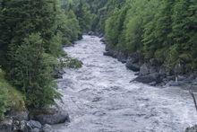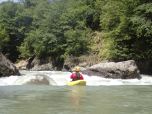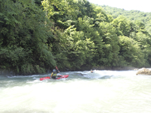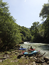 Waking up in the morning we quickly saw that the water had come up, and was now too high to do the Upper section. So our plan was changed to just have a mellow and short day, kayaking the lower class III section of river only. This run would have been a great run for a playboat at our high flow with numerous nice features. For us in our creekboats, it offered plenty of fun ferries and moves to make to spice it up a little, though only one rapid was harder than class III. The scenery on the run was very nice, though not rugged canyon like many of the other rivers we ran. Instead it was lush forest that could have been in Ecuador or North Carolina.