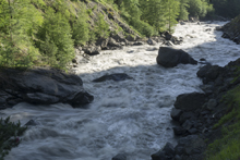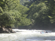 - Big One (IV). This rapid is easily scoutable form the road on the way up. There is a small creek crossing on the road where this rapid is. The line was down the far left the hole way. Some beefy holes are in the middle. The line is s-turny against the wall with some seams that could easily flip you. It is fairly straight forward though!