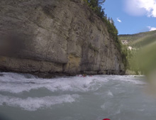Put-in: Go back out of Golden, cross the river and get out to Highway 1. Take it East for 15.9 km. Just before the bridge over the river you can park and walk down to the river. Note, you have to cross the railroad lines which is technically illegal so you do risk fine. Since the powers that be made that rule, most put in on the Middle and paddle down both. Maybe in the future this will change again. The rafting companies certainly are working to make it legal to access here as it has shut down their ability to commercially raft this run.