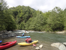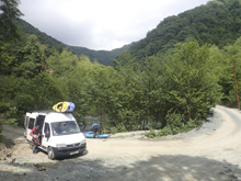 Take-out: 5.5 km above Kobuleti, the road up the river crosses the river. Take-out is here. Though we didn't use this take-out since we did the whole river so I am not sure how you get up from the water.