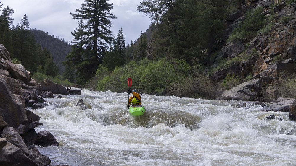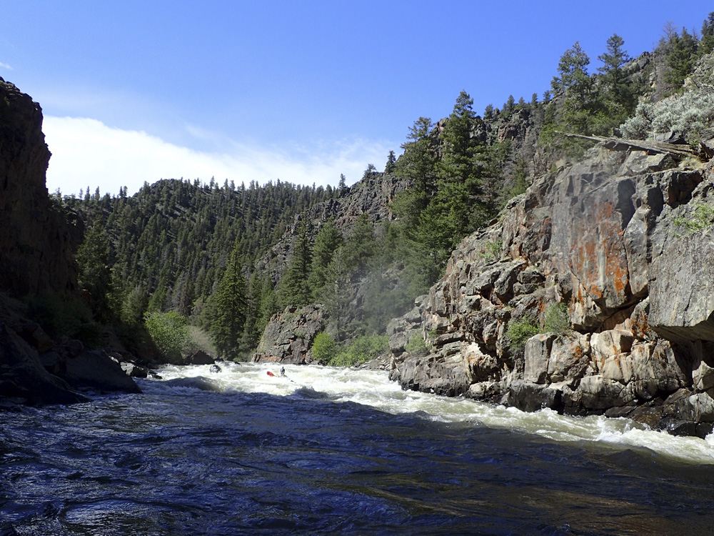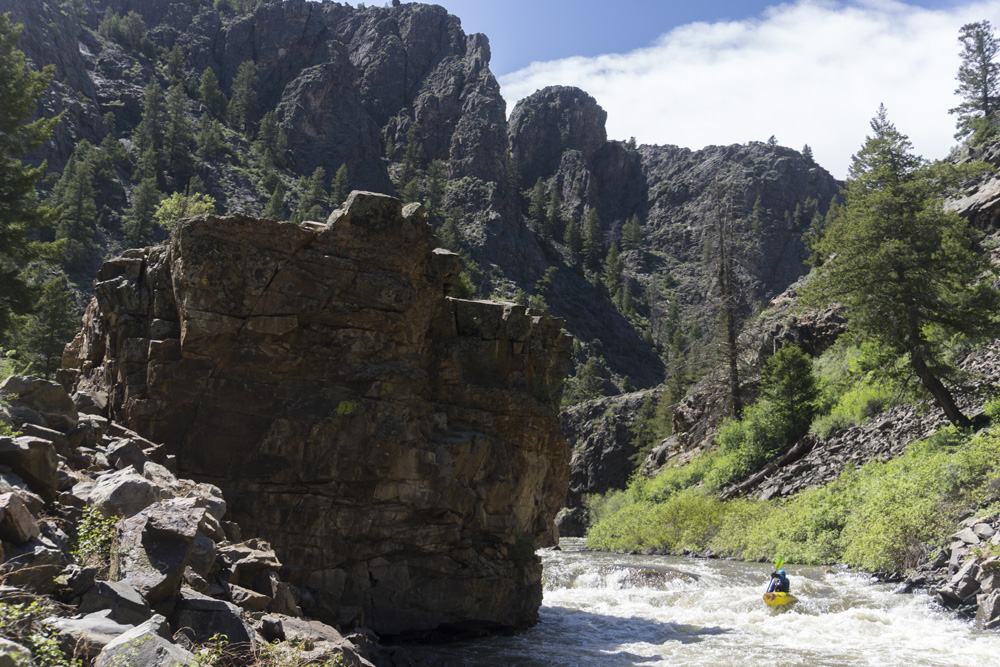 We found class III to IV whitewater in a beautiful canyon that was along the dirt road used for shuttle. There was very little traffic down here so the road was not in your face much at all. Two standout rapids were present, one was a long rapid with a rocky crux that bordered on class IV just because of its length and the log jam on the shore at the crux. The second one was immediately downstream of the take-out and packed a fluffy hole that I can imagine gets rowdy at high flows. Otherwise, the river had a lot of fun class III and really, very nice canyon scenery.