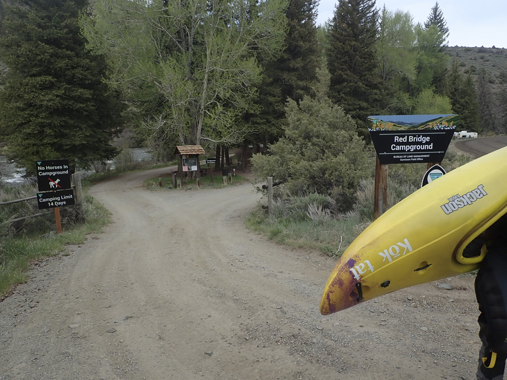 Put-in: Continue on Blue Mesa Rd downriver. At the bridge, go straight to turn onto county Rd 64 and continue for 4.7 miles to the end of the road. There are campsites back here, but it is not a tradition campground, just some sites along the road and river.