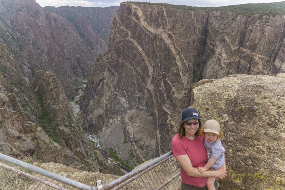 My parents, nor Diane, nor Aster had never been to the Black Canyon of the Gunnison. I kayaked it a few years back but was game to go see it as a tourist (road to put-in was closed this year for repairs so boating it was not an option) so we took an off day to recover after the Upper Animas and see another National Park. For simplicity's sake we just did the South Rim, despite the North Rim having better views and smaller crowds. The views from Silverton to the park were spectacular as we went up and over a pass, along the Red Mountains and down into the town of Ouray. Truely, the drive from Durango to Ouray is among the prettiest drives I have done. The down point of the visit to the park however was the lack of RV parking for my dad's rig, and one of the few spots being taken by a compact car with a license plate from Knox county of all places... not making our hometown proud dude! Otherwise, I will let the pics speak for themselves, or visit the write-up of the river from my previous trip for that perspective.