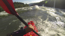 Just below put in we arrived at our first rapid, we all nervously paddle into it not knowing what lied within. From above it looked like just a simple wave train (of ocean size waves) but we were nervous none the less. Exiting the rapid we were all smiles and you can tell we began to think that perhaps this idea would be ok. Arriving at the second rapid, we all caught an eddy on the right at the lip to take a peek. But before we got a chance Diane decided to drop in... and Reiner followed. I was still upriver paddling into the eddy and think "my sense is to avoid the center right as it looks like there is likely a huge hole at the top." Sure enough I see both Reiner and Diane frantically paddling, Diane to the right and Reiner to the left. Both hit the meat of the hole but are on the edges where windows are present. Harry and I find a nice slide on the right around the meat of the whole. Our group is now in an eddy on the right below the entry move... all but Reiner who is now in the middle of the river and with no chance of exiting the rapid without moving downstream. I peel out to give him chase and hope for the best for both of us. After going to the right around one huge crashing wave, I get a glimpse of downriver 100 yards and a huge curling crashing wave and begin to paddle as hard as I can to the left. Paddling on huge water is interesting, sometimes waves form and disappear and mess you up, forcing you into bad ferry angles and surging you away from your goals; This time however the waves surged to power my ferry and get me around the waves. Which ended up being a moot point though as the curling crashing wave set had collapsed and no reformed yet by the time I got there. But it was still nice to make my ferry! Downstream we quickly got to the rapid we saw from the road. With the lesson learned on the previous rapid, we eddied out and scouted. Sure enough, you did not want to be far left... unless you were really far left and flirting the line of a 4 foot tall eddy line and the boil coming off of it and dropping into an apartment sized hole. We snuck right through small channels amongst the bed rock. The pour over I thought I saw from the road was not bad, just a low volume feature. As we peel back out into the current we are treated with the last challenge for the day, whirlpools on the eddy line. After a few mystery moves we were free and quickly floated the flat water down to take out.