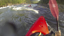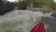 With a drive from Sjoa to Oslo still ahead of us for our flights the next morning, we still weren't satiated. Reiner had driven north just a day prior and had noticed that the Hunderfoss damn was still a significant amount of water. With the knowledge we decided to head south to it as it was very much on the way to the airport for us. Arriving in the evening, we noticed that it had a lot of water. The guidebook says it is good to 500 cms (~15,000 cfs)... but we estimated it had to be at least 1,000 cms. But the run was only supposed to be class III to IV right? Deciding to further investigate we drive up either side of the river hoping for a glimpse. We do manage one on the main river left road. The rapid we see looks surprisingly large. Is this the rapid that the book says is a sneak on the right away from huge holes at higher water? The right looks to have some poor overs as well... dang. Ah screw it, let's put on anyways... it is our last day and I am not ready to dry my gear yet!
