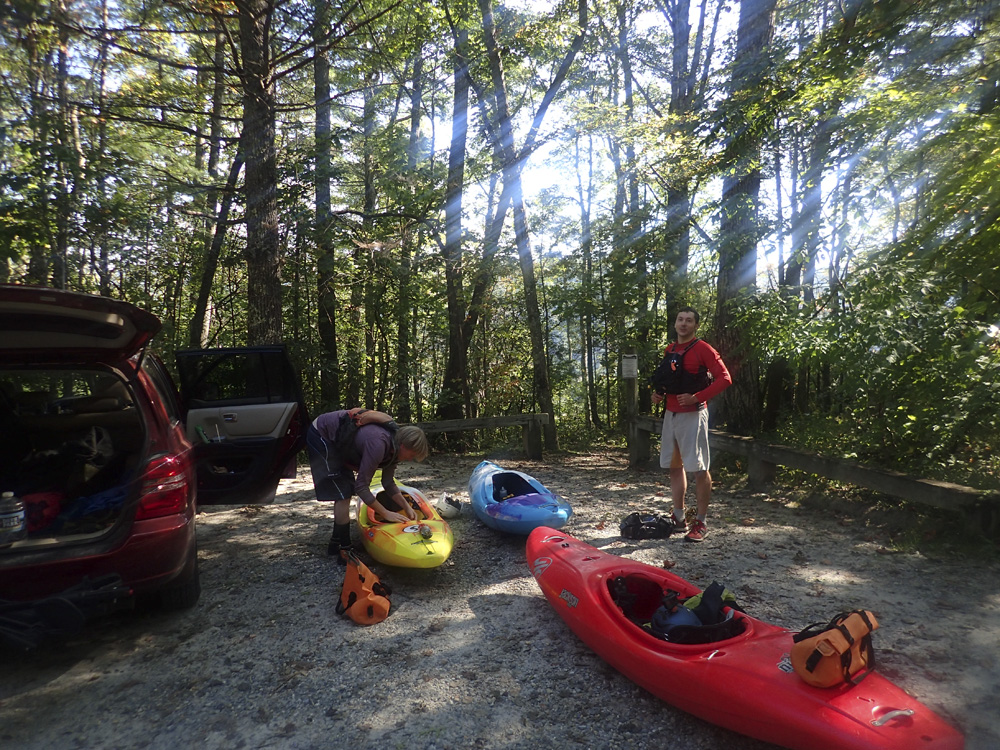 Take-out: From the town of Linville Falls, Head south on NC-183. After 0.7 miles, turn right into the Linville Falls area and trail access. If you cross the river, you went too far. This road quickly turns to dirt, follow if for 5.2 miles to the parking area for trail Conley Cove Trail. From the river, look for a backpackers camp along the river about 100 yards into the class II rapids. There is a trail that heads downriver and soon starts to climb. This is your trail. It will climb up a creek for its length. 0.2 miles from the end, you will get to a fork, go right to pop out at your car.