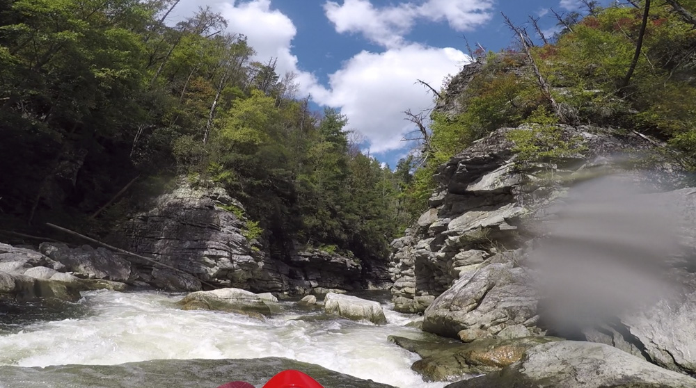 Up Against the Wall (IV- to IV). A short, pretty mellow section leads to a rapid that you run down the far right, boofing the exit in a narrow slot against the right wall.