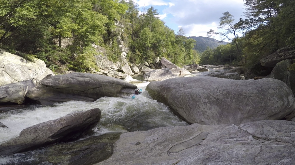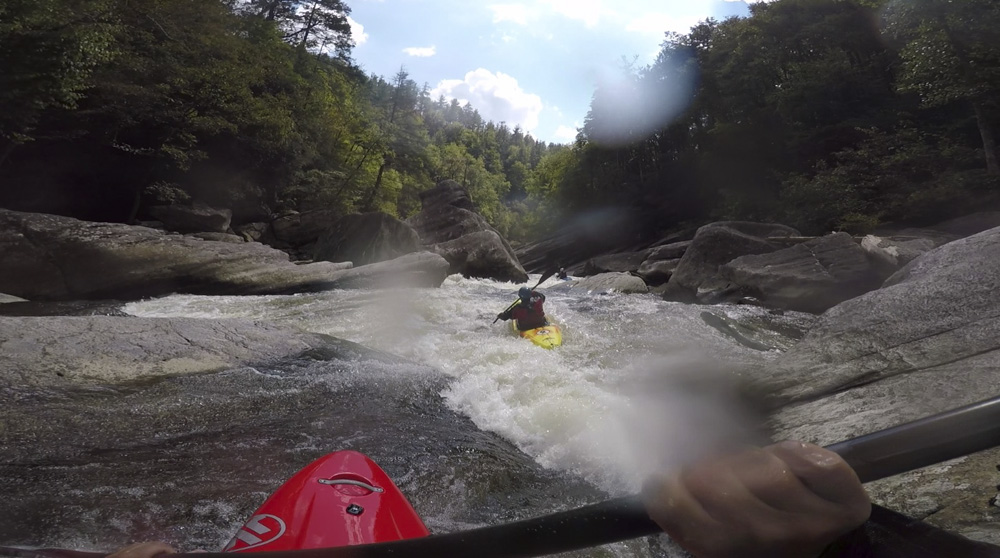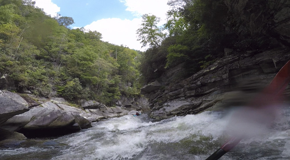The river itself is as classic as everyone says. In the SE, most rivers only maintain gradient for a few miles. Somehow, this run keeps it for longer... much longer. After a short paddle in below the falls, you pass through Babel Tower and enter the first gorge. This first gorge has some excellent boofs but tends to be smaller boulders. It isn't until the second gorge that it feels like the world gets tipped on its side, and the boulders become huge, along with the sieves and undercuts. Throughout this section, it is crucial to know the lines. There are some very unobvious lines, many channels end in severe consequences, and wood is ever shifting. Having someone who knows the lines will save countless hours for sure. The final gorge is much shorter, but also home to impressive drops and the most committing of them as well as the walls rise straight out of the river at times. This is Cathedral Gorge which in the heart of it, contains Cathedral Falls which is the tallest drop on the run, though certainly not the hardest. Below that a few more rapids await before the canyon wall peels back. This is your signal to hit the shore and begin the hike out. The other option, is to double the length of the day and continue downstream. Down there, the river is less channelized and the rapids get a little more dangerous, although less difficult and steep. Don't relax though as fatalities have occurred in the paddle out and all who I have talked to say the river is more dangerous down there. Finally, at the very end of that section is a few miles of mellow paddle out down to the lake.
