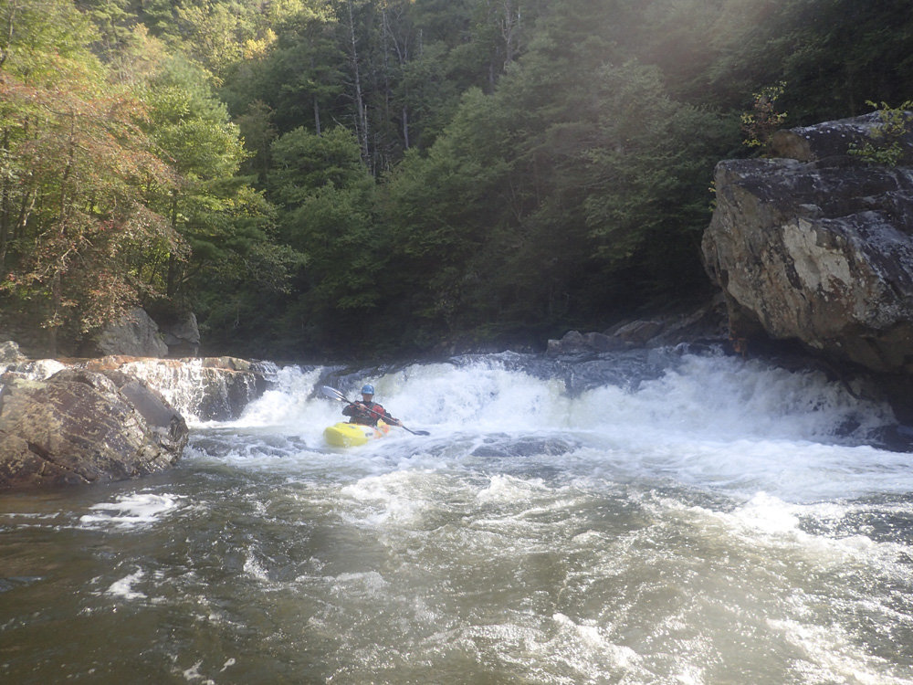 Babel Tower (IV+ to V). Two lines to choose from, the first is a left to right line to boof the obvious shelf on the right. The other is to stay left and boof the shear drop over there. Both work. It is surprisingly friendly.
