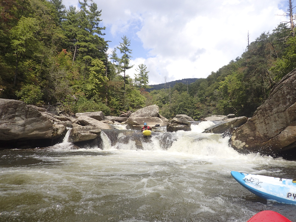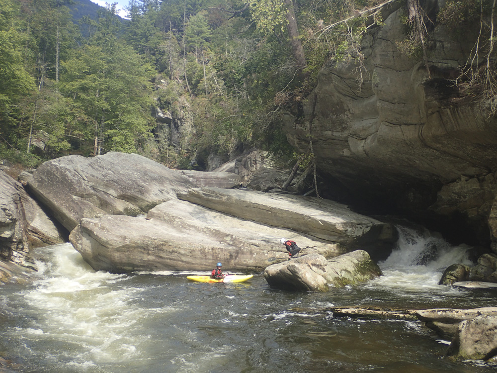 This run is one of those runs in the South East that needs no introduction. I have no memory of the first time I heard of this run, but am certain it was sometime well before we moved here. It was just always in my conscious as one of the best runs in the South East, and a classic for the country. And when we moved here, I made a list of the ultra classic runs in the South East that I REALLY wanted to run before moving back west. Those runs were Bear Creek (GA), Raven Fork (NC), West Prong (TN), Toxaway (NC) and Linville Gorge... also in North Carolina. With only Toxaway and Linville left on the list now after 4 years, I couldn't believe that I hadn't gotten on Linville specifically yet since it runs so dang often and even has a gauge. But, I guess in my defence, the first year we were here NC had a drought as every storm hit TN and not NC, and then I had a series of injuries resulting in surgeries which prevented me from signing up for a scouting/portaging and potentially a hiking mission. Though as it turns out, we only scouted a few, and the portaging really wasn't that bad, not compared to what I expected anyways with the size of the boulders down there.